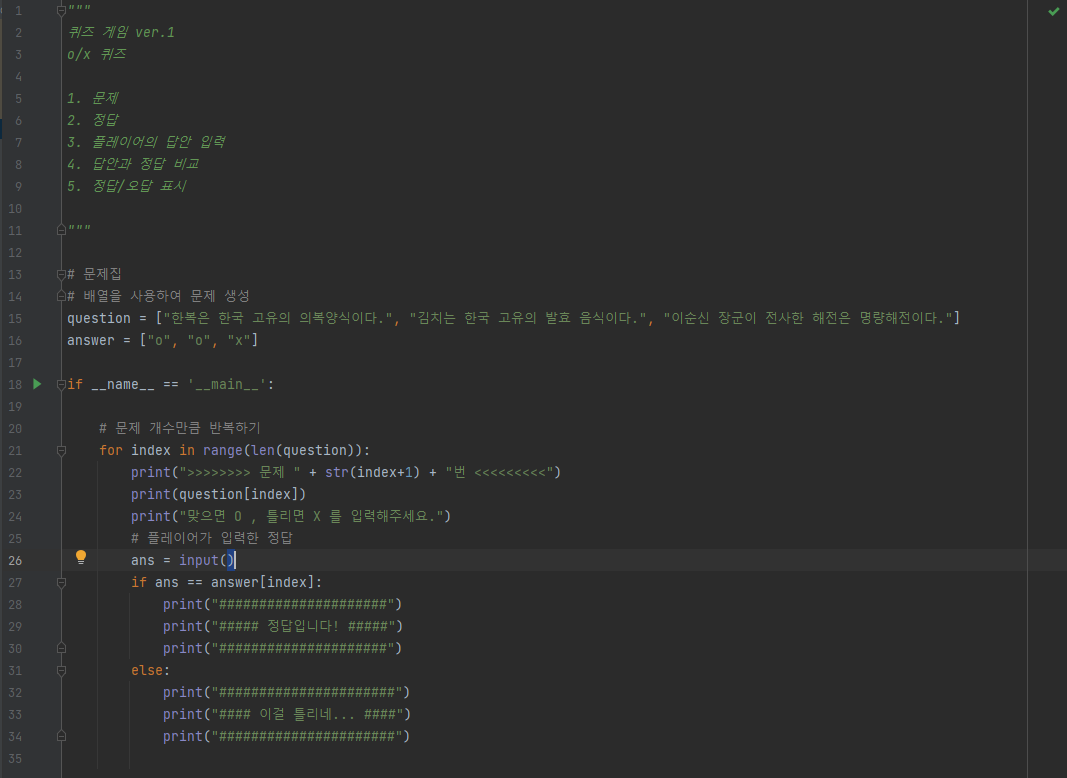 이렇게 첫번째 게임으로 퀴즈게임을 만들어보았다.