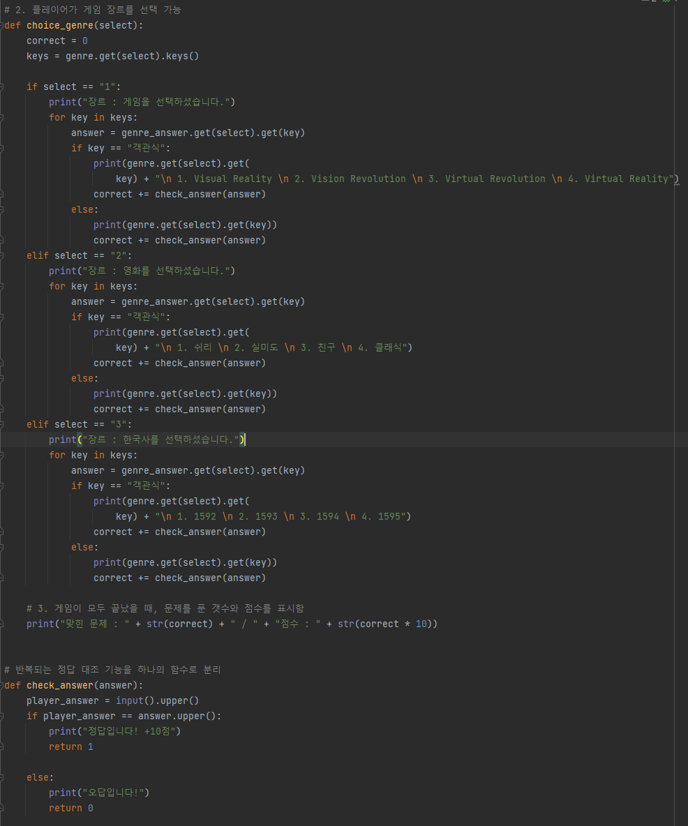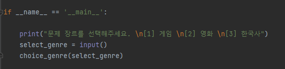 1. 장르를 나누어 플레이어가 원하는 장르의 퀴즈를 풀 수 있도록 하는것,