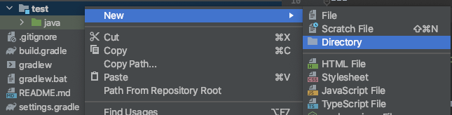 test 디렉터리 아래엔 resources 폴더가 없는 걸 확인할 수 있다.