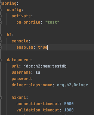 test 디렉토리에 resources 폴더 생성 후 새로운 yaml 파일을 만들어 설정을 분리하여 사용하게 됐다.