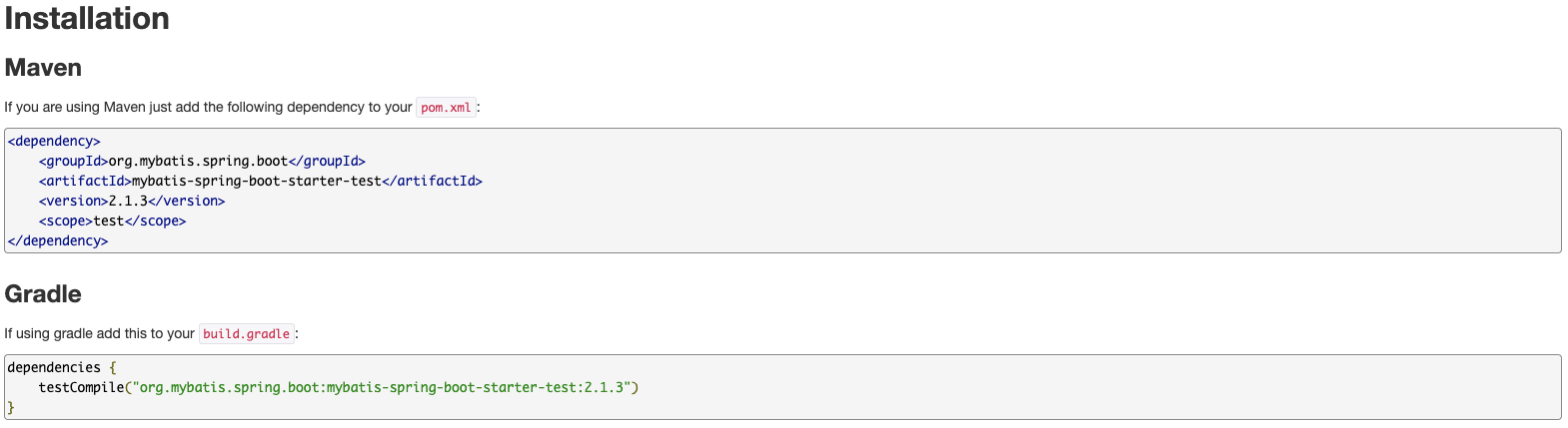 testCompile("org.mybatis.spring.boot:mybatis-spring-boot-starter-test:2.1.3")
